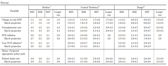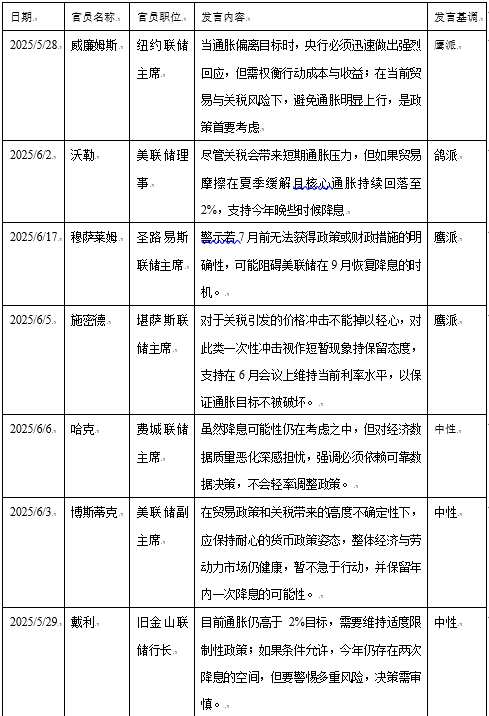 在2025年6月的联邦公开市场委员会(FOMC)会议上,美联储维持联邦基金利率目标区间于4.25%-4.5%区间不变,并继续维持年内降息两次的立场。会后声明中,FOMC特别强调"对经济前景的不确定性已经减少,但仍处于较高水平",并表示通胀在某种程度上依然高企,失业率则维持于低位,表明劳动力市场韧性犹存,可以等待更多经济走向信息后再考虑对政策立场进行任何调整。