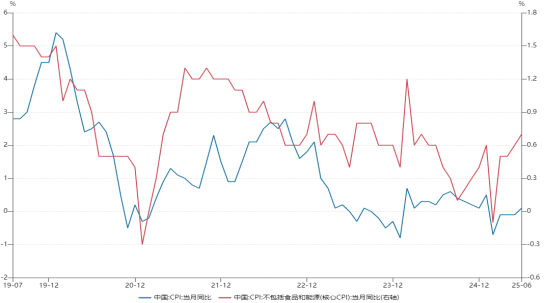 6月13日,以色列先发制人对伊朗发动代号为“崛起的雄狮”的空袭行动,引发新一轮以伊冲突。国际油价受此影响一度大涨,促使我国发改委两次上调成品油价格,影响能源价格降幅较上月收窄1.0个百分点。而地缘局势的恶化,也使得市场避险情绪快速升温,国内外贵金属价格短期持续上行,也对通胀进行支撑。除此之外,在618购物节叠加“以旧换新”政策不断落实的背景下,居民消费需求较去年得到更大程度释放,部分消费品价格(如文娱耐用消费品等)及以汽车为代表的耐用消费品价格同比均有好转。接下来,暑期旅游旺季将至,各地陆续开展文体娱乐活动,宾馆住宿和旅游价格料进一步回升,叠加贸易战重新谈判影响,非食品价格料上涨。但食品端供需格局短期无法改变,压力尚存,此消彼长下,通胀水平大概率温和运行,核心通胀维持回暖趋势。