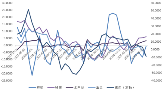 二三季度,农产品供应逐步进入旺季,鲜菜鲜果、蛋类等食品供给较为充足,叠加高温、降雨较常年同期偏多影响,共同推动当月食品CPI同比进一步回落,录得-0.3%,环比下降0.4%,但降幅小于季节性水平0.5%。在猪周期以及需求淡季作用下,猪肉供需失衡进一步加剧, 猪肉价格下降1.2%,其余禽肉类价格亦多数下行。三季度对应母猪产能处于增产周期,中期仍有供应压力,同时需求稳中趋弱,养殖端出栏节奏和二育入场情况是影响短期行情的关键因素。后期出栏节奏若有所恢复,对价格提振作用减弱,上涨步伐将放慢。