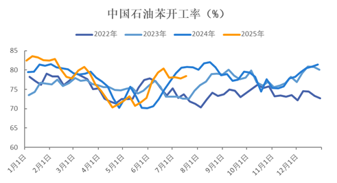 7月,国内石油苯、加氢苯装置小幅增加,下游苯乙烯、苯酚有新产能计划投产,国内纯苯供需边际改善,或加大对海外资源的需求。据隆众资讯,7月1日至20日,韩国出口至中国纯苯15.60万吨,高于上月同期的14.86万吨。预计7月中国苯进口环比有所增加。