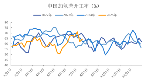 6月中国苯进口量出现较大幅度下降,主因国产苯数量增加所致。6月,国内纯苯装置集中检修结束,大型停车装置陆续重启导致石油苯、加氢苯产能利用率大幅上升,国产纯苯产量增加。据钢联数据,6月国内纯苯总产量在221.82万吨,环比+7.44%。其中,石油苯产量在185.90万吨,环比+5.69%;加氢苯产量在35.92万吨,环比+17.54%。与之相对,国内纯苯需求并没有得到显著提升。据同花顺数据,6月国内纯苯五大下游(苯乙烯、己内酰胺、苯酚、苯胺、己二酸)共消耗纯苯239.76万吨,环比-0.08%。受制于需求弱势,国内纯苯生产部分挤占海外纯苯供应,导致进口量、进口依赖度出现较大幅度下降。