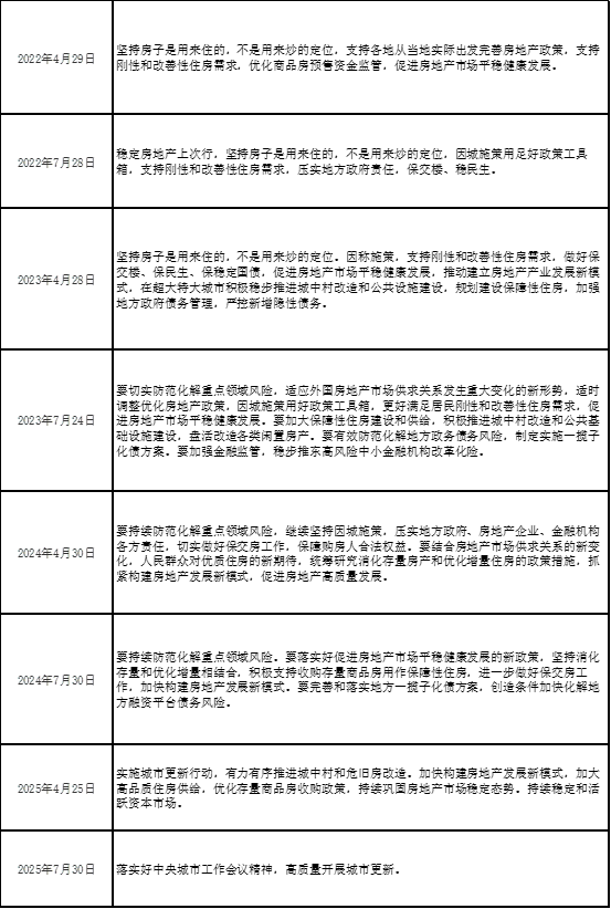 表1政治局会议关于房地产市场的内容