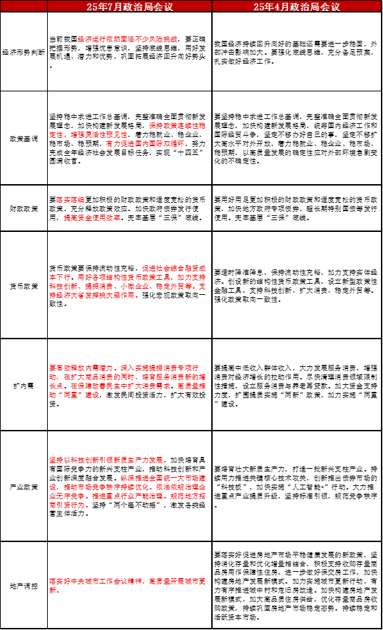 表2政治局会议对比