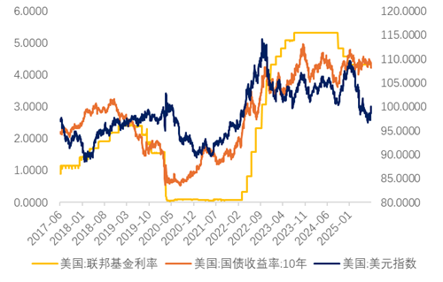 图8 美元及长端国债收益率走势