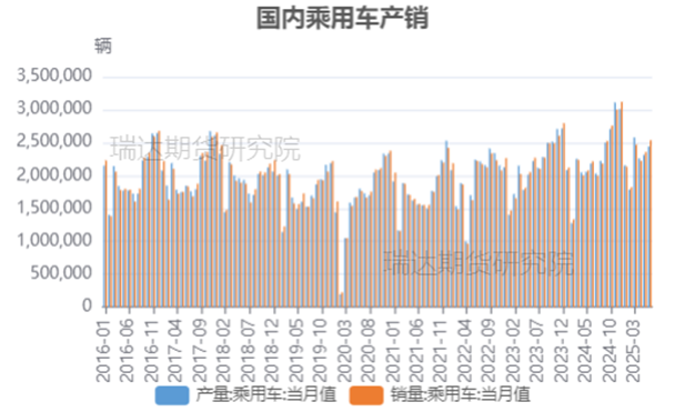 中汽协数据显示,2025年1-7月份,我国汽车产销累计分别在 1823.5 万辆和 1826.9 万辆,同比增长 12.7% 和 12%。其中,1-7 月乘用车累计产销 1583.8 万辆和 1584.1 万辆,同比增幅达 13.8% 和 13.4%,以旧换新政策持续释放置换需求,叠加行业综合整治缓解 “内卷”,企业新车型密集投放,均对市场韧性形成支撑,行业复苏力好于预期;1-7 月商用车累计产销 239.7 万辆和 242.8 万辆,同比增长 6% 和 3.9%,物流需求回暖与政策刺激推动行业呈现温和复苏,整体来看,行业延续复苏态势。