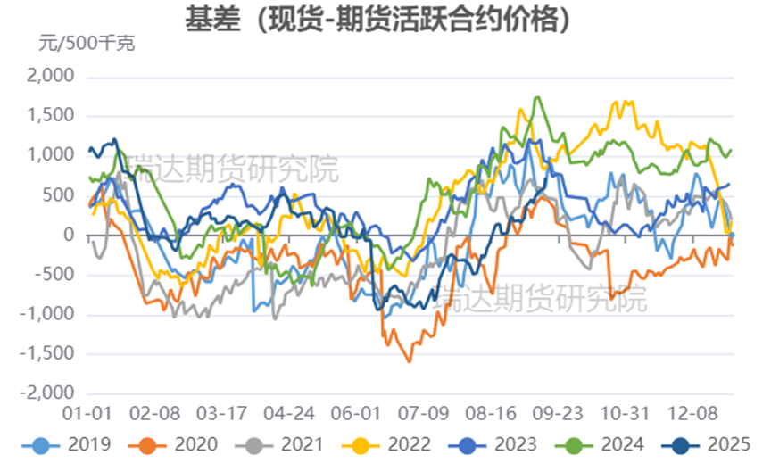 综合来看,此阶段基差走强基本是通过现货价格季节性走强实现的。后期而言,结合当下供需形势以及季节性规律来看,短期在节日备货结束前,现货价格或仍有一定的支撑,而期价在高存栏压制下,也难有上涨的空间。故而,基差或继续保持在此水平窄幅波动。不过,随着各环节备货结束,市场需求逐步降温,现货价格将季节性回落,基差也将再度走弱。