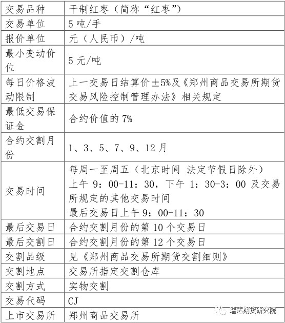 首日挂牌的红枣期货合约为:CJ1912、CJ2001、CJ2003、CJ2005。