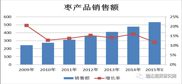 枣产品的营养保健价值在国内的社会认可度较高,随着我国国民生活水平的不断提高,人们越来越注重养生,对红枣的需要将进一步增长,预计国内红枣消费将保持稳步增长的态势。此外,海外市场具有巨大的发展空间。目前,红枣消费主要集中在中国以及东亚、东南亚中华文化圈,出口率较低。随着红枣保鲜技术和深加工技术的进一步发展以及对外扩展能力的快速提升,加上国外消费者对红枣养生功效的了解,红枣出口量将会有大幅的增长。