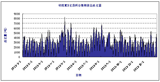 印度大宗商品交易所(MCX)于2003年11月在孟买成立。至今为止,MCX已占有印度商品期货市场超过80%的份额。印度MCX交易所推出三种白银期货合约,分别是1千克的微型(Micro)白银期货合约、5千克的迷你(Mini)白银期货合约和30千克的白银期货合约。2011年,印度MCX的1千克白银期货合约成交4686.54万手,合4.69万吨,按交易量(手)排名全球白银期货第一。5千克白银期货合约成交4680.43万手,合23.4万吨,30千克白银期货合约成交2443.45万手,合73.3万吨,按成交量(手)排名,分别位居第二、第三位。
